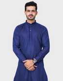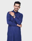 Cotton Giza Long Kurta Pleeted – Navy Blue