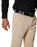 These pants feature a slim-fit design that closely follows the natural contours of your body, providing a tailored, modern look. Unlike looser, more traditional cuts, the slim fit offers a streamlined silhouette that enhances your appearance, giving you a polished and sophisticated edge.