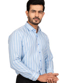 Baby Blue Men's Shirt With White Stripes
